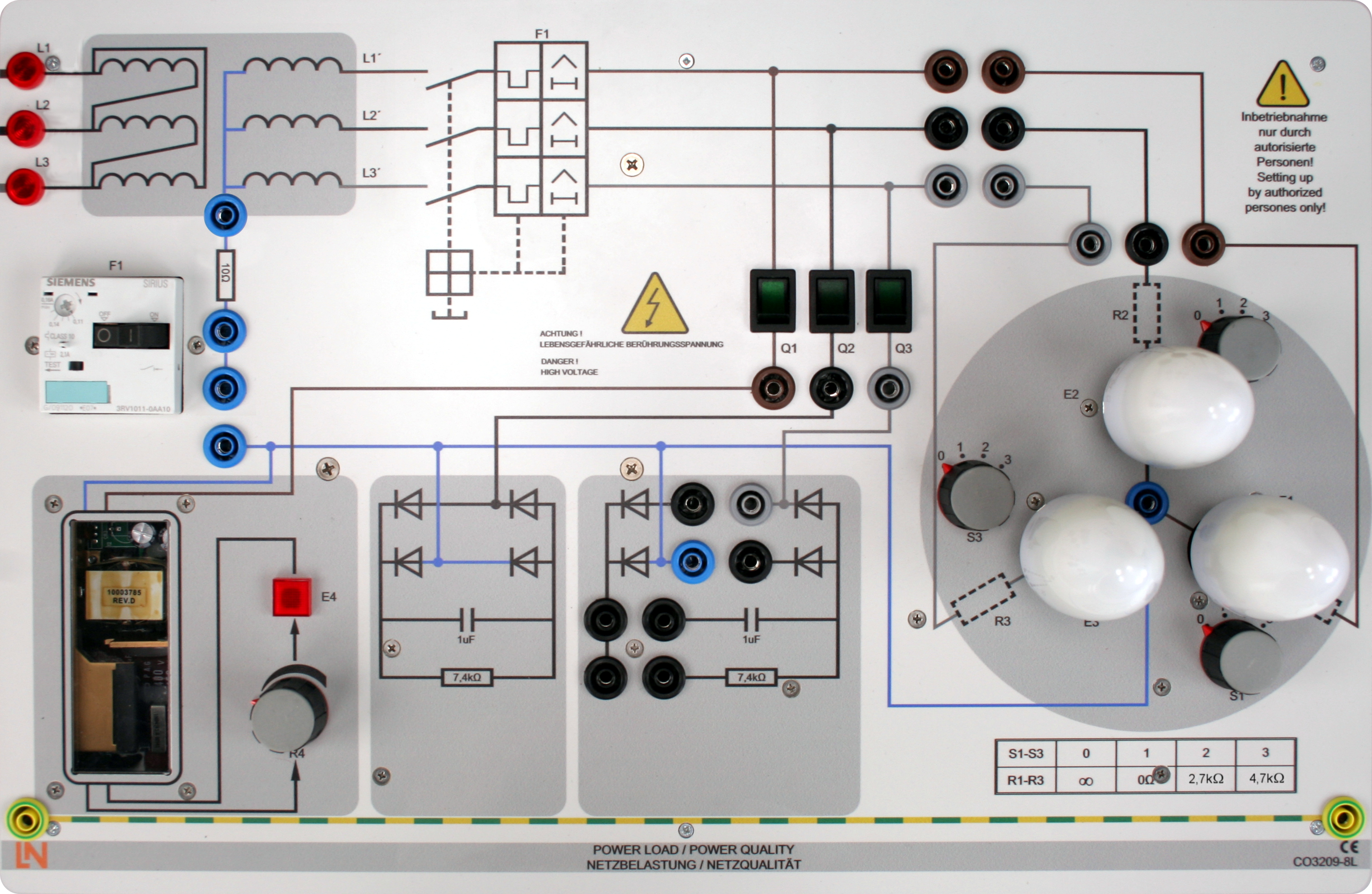 Con el nuevo sistema de capacitación profesional de Lucas Nülle, además del tema de la simetría de las redes, se puede analizar la sobretensión producida por cortes en el conductor neutro, el desplazamiento del punto neutro y las interferencias que afectan a una red.